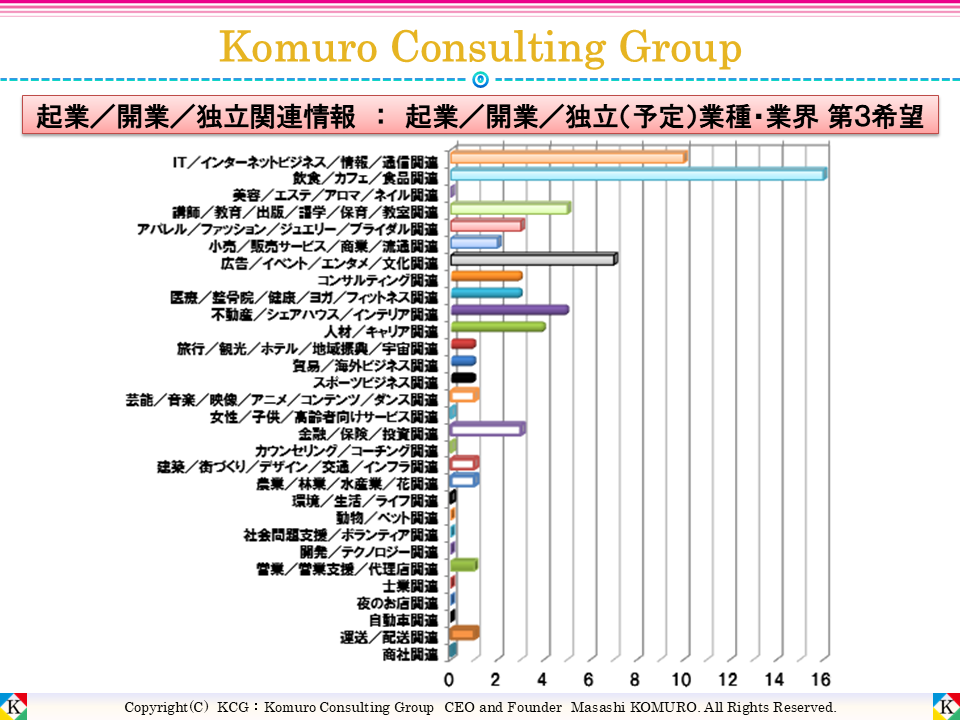 | 調査対象 | コムロコンサルティンググループ主催 起業・開業・独立セミナ/ワークショップ/講座参加者 |
