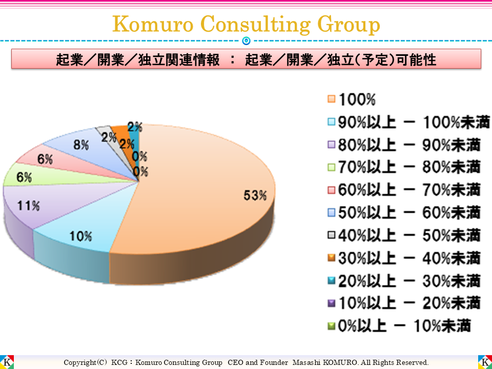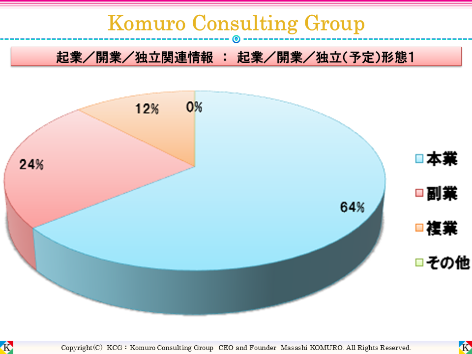 | 調査対象 | コムロコンサルティンググループ主催 起業・開業・独立セミナ/ワークショップ/講座参加者 |